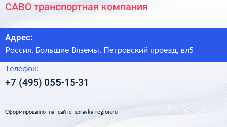 САВО, транспортная компания по адресу Ozon, вл5 с2, Петровский проезд, Городок-17, Школьный, Большие Вязёмы, Одинцовский городской округ, Московская область, Центральный федеральный округ, 143051, Россия в дальнейшем Организация, размещена в следующих категориях: