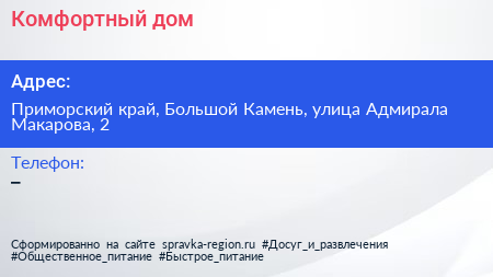 Комфортный дом по адресу Приморский край, Большой Камень, улица Адмирала Макарова, 2 в дальнейшем Организация, размещена в следующих категориях: