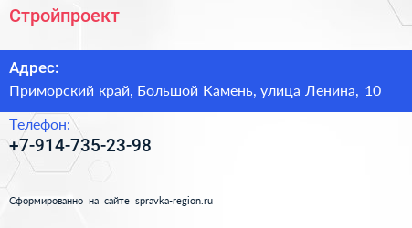 Стройпроект по адресу Приморский край, Большой Камень, улица Ленина, 10 в дальнейшем Организация, размещена в следующих категориях: