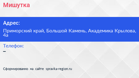Мишутка по адресу Приморский край, Большой Камень, Академика Крылова, 4а в дальнейшем Организация, размещена в следующих категориях: