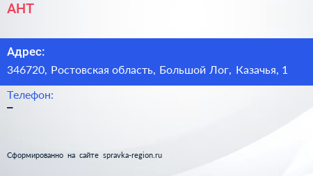АНТ по адресу 346720, Ростовская область, Большой Лог, Казачья, 1 в дальнейшем Организация, размещена в следующих категориях: