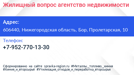 Жилищный вопрос, агентство недвижимости по адресу 606440, Нижегородская область, Бор, Пролетарская, 10 в дальнейшем Организация, размещена в следующих категориях: