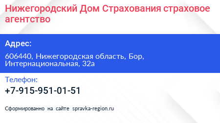 Нижегородский Дом Страхования, страховое агентство по адресу 606440, Нижегородская область, Бор, Интернациональная, 32а в дальнейшем Организация, размещена в следующих категориях: