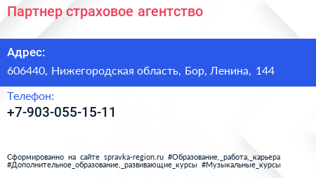 Партнер, страховое агентство по адресу 606440, Нижегородская область, Бор, Ленина, 144 в дальнейшем Организация, размещена в следующих категориях: