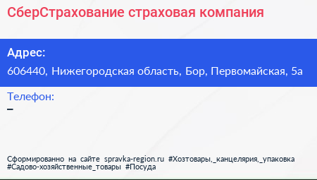 СберСтрахование, страховая компания по адресу 606440, Нижегородская область, Бор, Первомайская, 5а в дальнейшем Организация, размещена в следующих категориях: