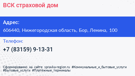 ВСК, страховой дом по адресу 606440, Нижегородская область, Бор, Ленина, 100 в дальнейшем Организация, размещена в следующих категориях: