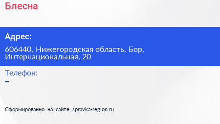 Блесна по адресу 606440, Нижегородская область, Бор, Интернациональная, 20 в дальнейшем Организация, размещена в следующих категориях: