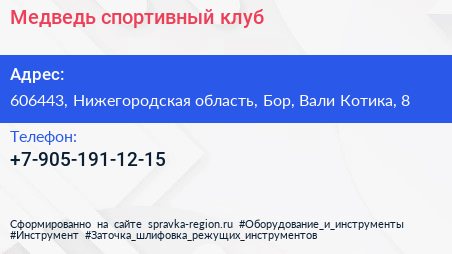 Медведь, спортивный клуб по адресу 606443, Нижегородская область, Бор, Вали Котика, 8 в дальнейшем Организация, размещена в следующих категориях: