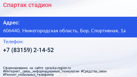 Спартак, стадион по адресу 606440, Нижегородская область, Бор, Спортивная, 1а в дальнейшем Организация, размещена в следующих категориях: