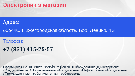 Электроник`s, магазин по адресу 606440, Нижегородская область, Бор, Ленина, 131 в дальнейшем Организация, размещена в следующих категориях: