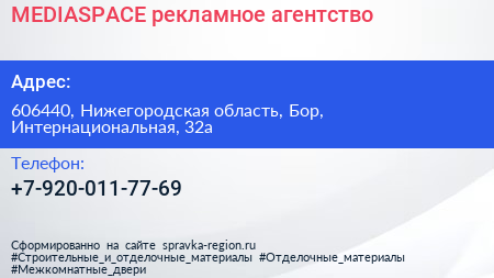 MEDIASPACE, рекламное агентство по адресу 606440, Нижегородская область, Бор, Интернациональная, 32а в дальнейшем Организация, размещена в следующих категориях: