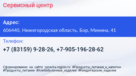 Сервисный центр по адресу 606440, Нижегородская область, Бор, Минина, 41 в дальнейшем Организация, размещена в следующих категориях: