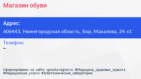 Магазин обуви по адресу 606443, Нижегородская область, Бор, Махалова, 24 к1 в дальнейшем Организация, размещена в следующих категориях: