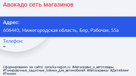 Авокадо, сеть магазинов по адресу 606443, Нижегородская область, Бор, Рабочая, 55а в дальнейшем Организация, размещена в следующих категориях: