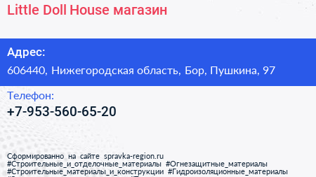 Little Doll House, магазин по адресу 606440, Нижегородская область, Бор, Пушкина, 97 в дальнейшем Организация, размещена в следующих категориях: