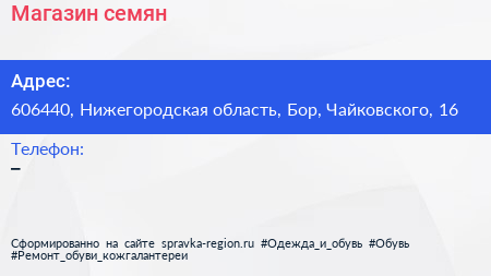 Магазин семян по адресу 606440, Нижегородская область, Бор, Чайковского, 16 в дальнейшем Организация, размещена в следующих категориях: