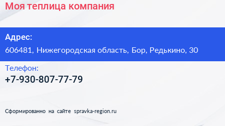 Моя теплица, компания по адресу 606481, Нижегородская область, Бор, Редькино, 30 в дальнейшем Организация, размещена в следующих категориях: