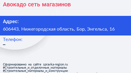 Авокадо, сеть магазинов по адресу 606443, Нижегородская область, Бор, Энгельса, 16 в дальнейшем Организация, размещена в следующих категориях: