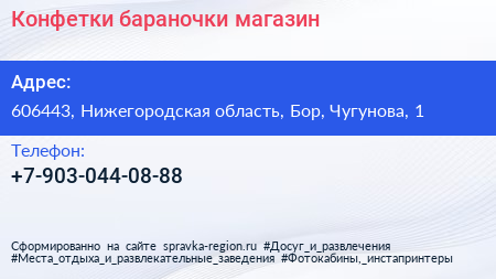 Конфетки-бараночки, магазин по адресу 606443, Нижегородская область, Бор, Чугунова, 1 в дальнейшем Организация, размещена в следующих категориях: