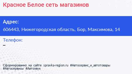 Красное & Белое, сеть магазинов по адресу 606443, Нижегородская область, Бор, Максимова, 14 в дальнейшем Организация, размещена в следующих категориях: