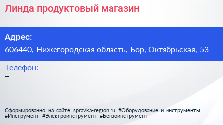 Линда, продуктовый магазин по адресу 606440, Нижегородская область, Бор, Октябрьская, 53 в дальнейшем Организация, размещена в следующих категориях:
