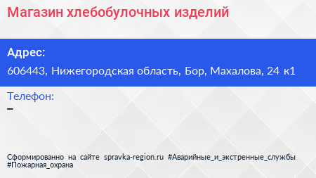 Магазин хлебобулочных изделий по адресу 606443, Нижегородская область, Бор, Махалова, 24 к1 в дальнейшем Организация, размещена в следующих категориях: