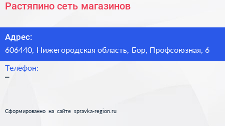 Растяпино, сеть магазинов по адресу 606440, Нижегородская область, Бор, Профсоюзная, 6 в дальнейшем Организация, размещена в следующих категориях: