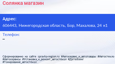 Солянка, магазин по адресу 606443, Нижегородская область, Бор, Махалова, 24 к1 в дальнейшем Организация, размещена в следующих категориях: