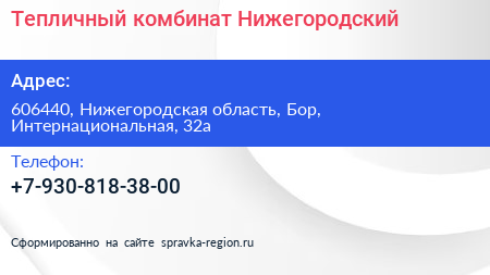 Тепличный комбинат Нижегородский по адресу 606440, Нижегородская область, Бор, Интернациональная, 32а в дальнейшем Организация, размещена в следующих категориях: