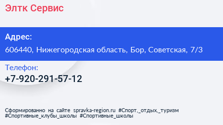 Элтк-Сервис по адресу 606440, Нижегородская область, Бор, Советская, 7/3 в дальнейшем Организация, размещена в следующих категориях: