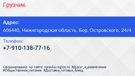 Грузчик по адресу 606440, Нижегородская область, Бор, Островского, 24/4 в дальнейшем Организация, размещена в следующих категориях: