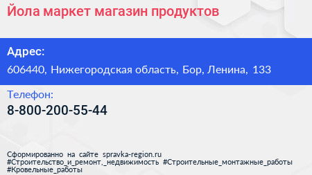 Йола-маркет, магазин продуктов по адресу 606440, Нижегородская область, Бор, Ленина, 133 в дальнейшем Организация, размещена в следующих категориях: