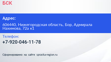 БСК по адресу 606440, Нижегородская область, Бор, Адмирала Нахимова, 72а к1 в дальнейшем Организация, размещена в следующих категориях: