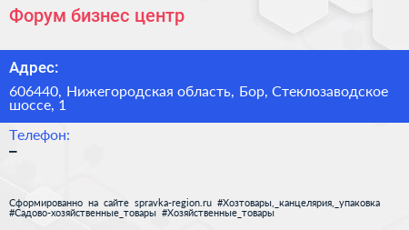 Форум, бизнес-центр по адресу 606440, Нижегородская область, Бор, Стеклозаводское шоссе, 1 в дальнейшем Организация, размещена в следующих категориях: