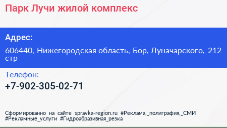 Парк Лучи, жилой комплекс по адресу 606440, Нижегородская область, Бор, Луначарского, 212 стр в дальнейшем Организация, размещена в следующих категориях: