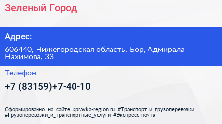Зеленый Город по адресу 606440, Нижегородская область, Бор, Адмирала Нахимова, 33 в дальнейшем Организация, размещена в следующих категориях: