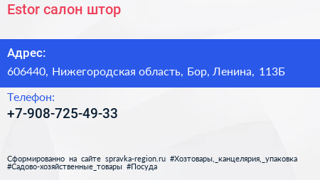 Estor, салон штор по адресу 606440, Нижегородская область, Бор, Ленина, 113Б в дальнейшем Организация, размещена в следующих категориях: