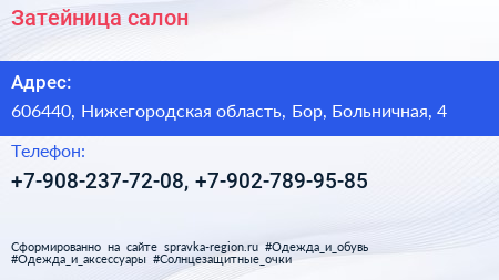 Затейница, салон по адресу 606440, Нижегородская область, Бор, Больничная, 4 в дальнейшем Организация, размещена в следующих категориях: