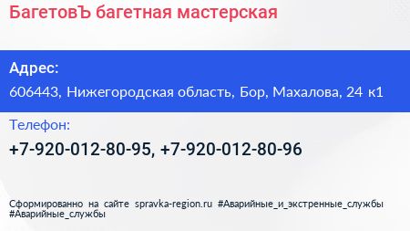 БагетовЪ, багетная мастерская по адресу 606443, Нижегородская область, Бор, Махалова, 24 к1 в дальнейшем Организация, размещена в следующих категориях: