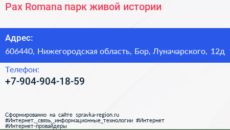 Pax Romana, парк живой истории по адресу 606440, Нижегородская область, Бор, Луначарского, 12д в дальнейшем Организация, размещена в следующих категориях: