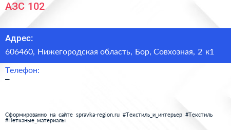 АЗС №102 по адресу 606460, Нижегородская область, Бор, Совхозная, 2 к1 в дальнейшем Организация, размещена в следующих категориях: