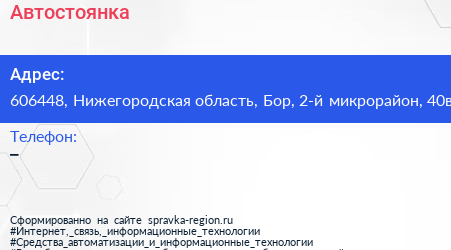 Автостоянка по адресу 606448, Нижегородская область, Бор, 2-й микрорайон, 40в в дальнейшем Организация, размещена в следующих категориях: