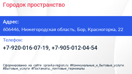 Городок, пространство по адресу 606446, Нижегородская область, Бор, Красногорка, 22 в дальнейшем Организация, размещена в следующих категориях: