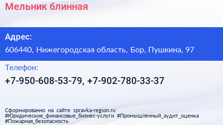 Мельник, блинная по адресу 606440, Нижегородская область, Бор, Пушкина, 97 в дальнейшем Организация, размещена в следующих категориях: