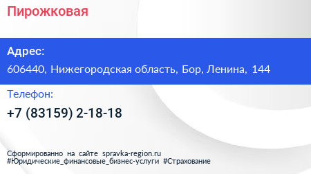 Пирожковая по адресу 606440, Нижегородская область, Бор, Ленина, 144 в дальнейшем Организация, размещена в следующих категориях: