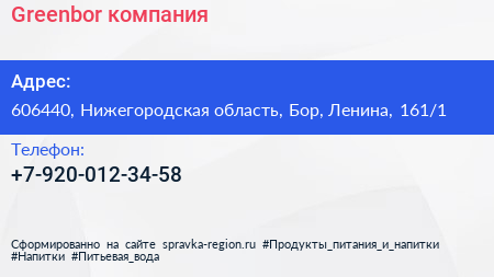 Greenbor, компания по адресу 606440, Нижегородская область, Бор, Ленина, 161/1 в дальнейшем Организация, размещена в следующих категориях: