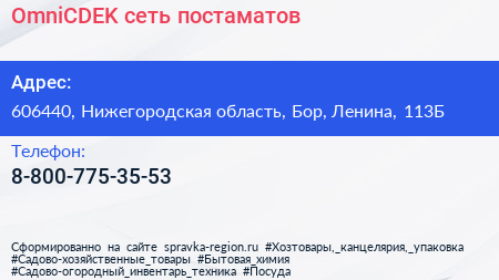 OmniCDEK, сеть постаматов по адресу 606440, Нижегородская область, Бор, Ленина, 113Б в дальнейшем Организация, размещена в следующих категориях: