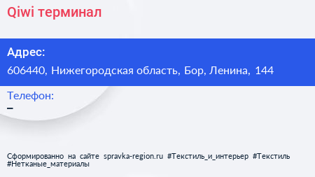 Qiwi, терминал по адресу 606440, Нижегородская область, Бор, Ленина, 144 в дальнейшем Организация, размещена в следующих категориях: