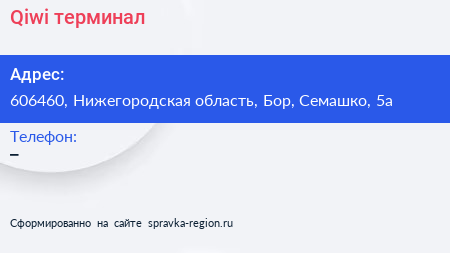 Qiwi, терминал по адресу 606460, Нижегородская область, Бор, Семашко, 5а в дальнейшем Организация, размещена в следующих категориях:
