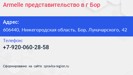 Armelle, представительство в г. Бор по адресу 606440, Нижегородская область, Бор, Луначарского, 42 в дальнейшем Организация, размещена в следующих категориях: